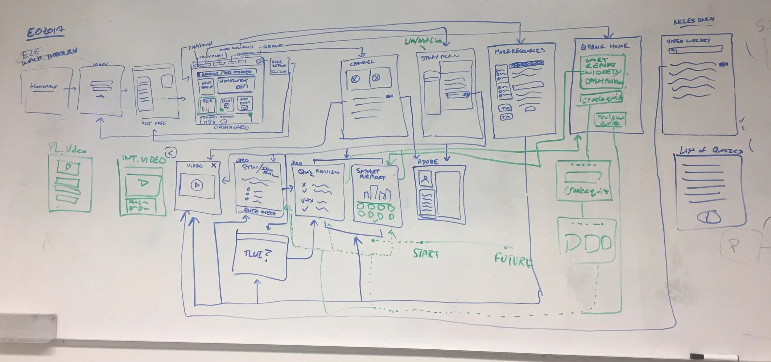 First off, I leveraged internal knowledge into a user flow. I used participatory design exercises with tutors, trainers, learning science professionals and students of Kaplan. These were short 30 mins sessions with pizza and beer incentives. This exercise created inclusion in my design process and helped me collect hypothesis to design and test. This process kept me from reinventing the wheel and saved time.