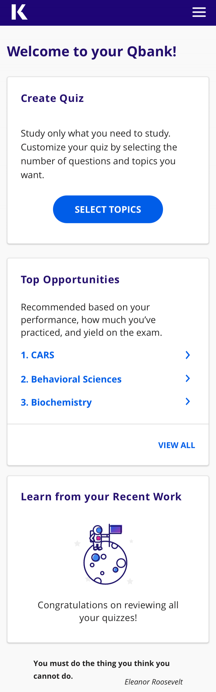 The quiz experience for optimum learning must entail three major tasks - quiz creation, quiz experience and quiz review.